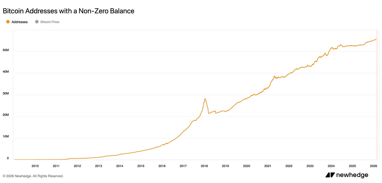 The answer lies in how we use Bitcoin today. Most participants interact through centralized exchanges, ETFs, custodians, or "wrapped" BTC. These layers handle the activity off-chain, meaning they don't generate new on-chain addresses.