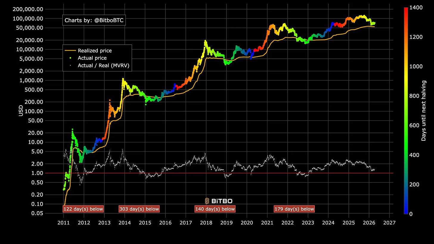 Bitcoin’s structure remains firmly in a bear market. As long as we stay below $80k without a daily candle close above it, the thesis doesn’t change. The Realized Price is slowly moving downward, currently sitting at $54,200. Historically, we have always dipped below this level before a true bottom is formed. That remains my base case for the coming months.