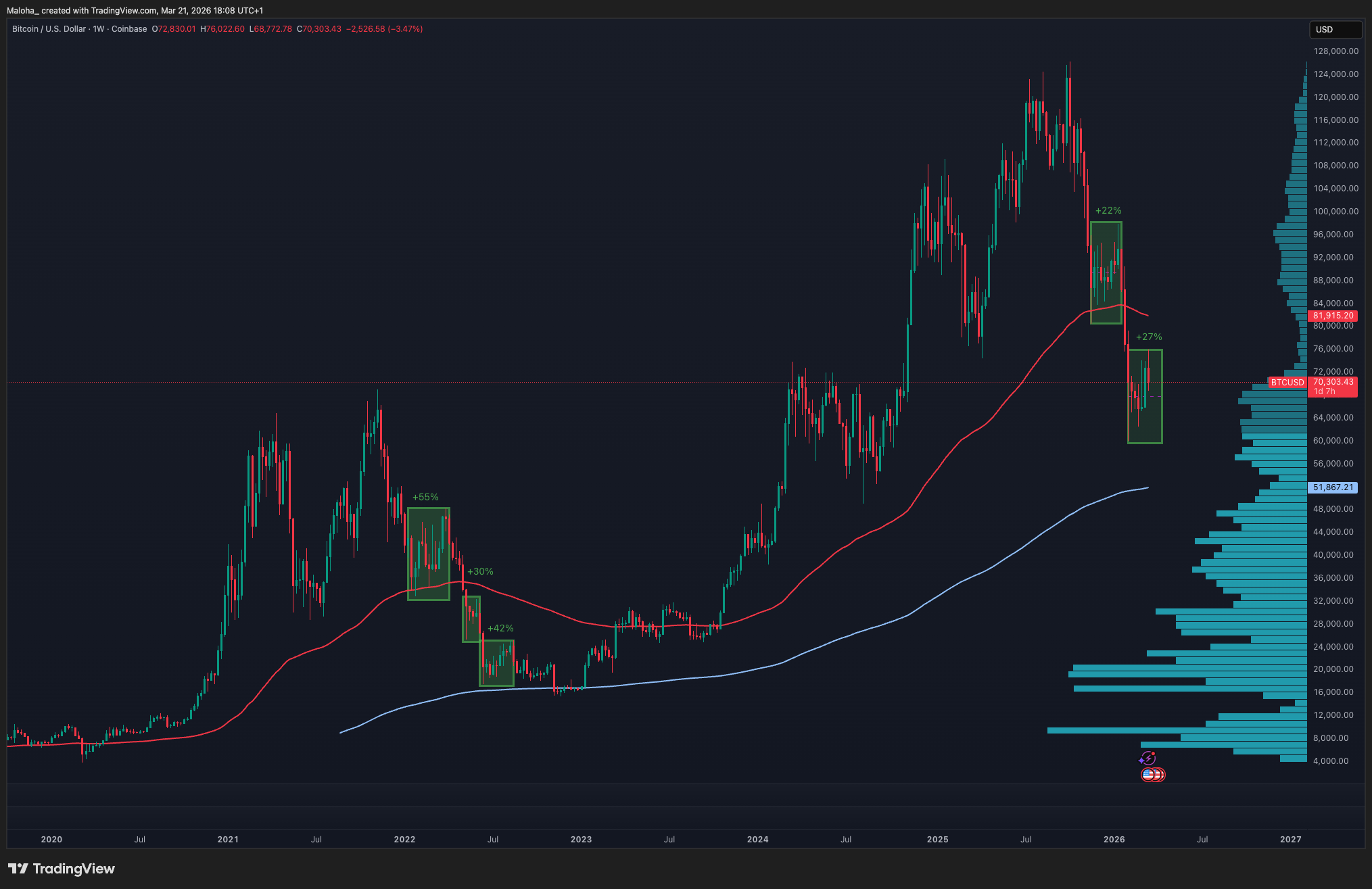 If you zoom out, we are still in a bearish setup. All this has happened multiple times in the past and is a normal reaction to being oversold. Could you trade this? Sure, if you want to take short term trading into consideration. We went up 27%. As we did in the last cycles (sometimes even over 55%).